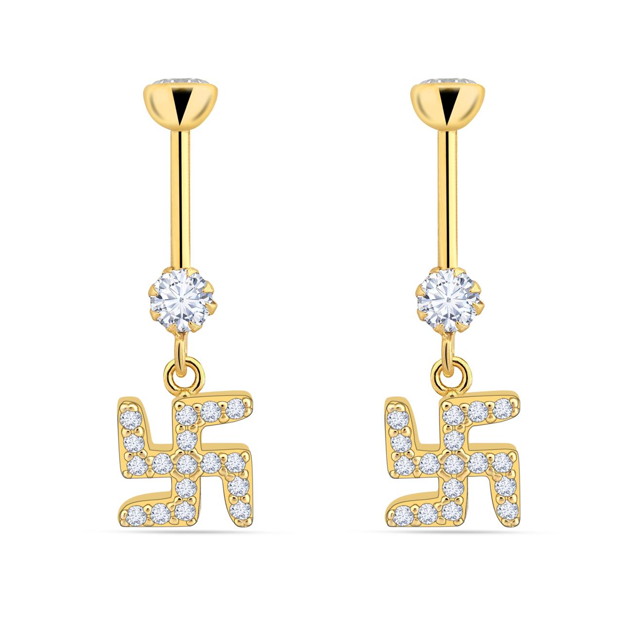 Expertly crafted with 925 silver, this lightweight Golden Swastik Hanging earring is a traditional must-have that's hot selling. Enhance your look with its elegant design and infuse positive energy with the auspicious symbol of prosperity.