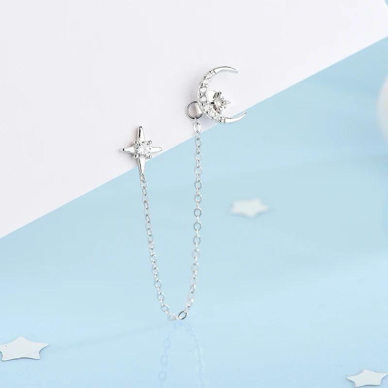 Crafted with high-quality 925 silver, these Moon and Star Double Hole Earrings are a stunning addition to any outfit. The silver material adds a touch of elegance and durability, making them perfect for everyday wear. Elevate your style and make a statement with these beautiful earrings.