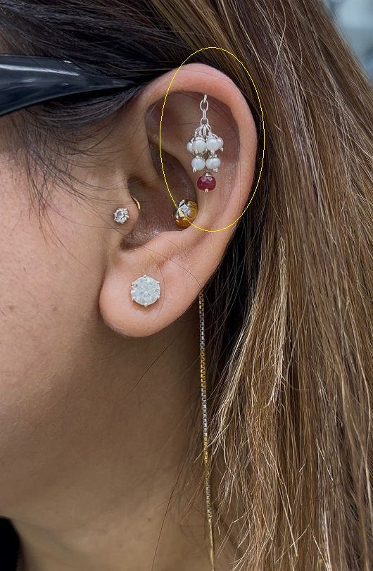 Indulge in elegance and sophistication with our handmade Pearl & Ruby Drop Hanging earrings. Each delicate grape-shaped pearl is accompanied by a stunning ruby drop, set in 925 silver for daily wear. Elevate your style with this timeless accessory.