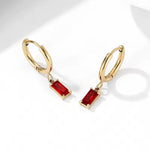 Experience timeless elegance with our Geometric Cubic Zerconia Hoop earrings. The beautiful ruby-colored stones are set in 925 silver, with a micron gold plating for long-lasting shine. Elevate any outfit with these expertly crafted hoops.